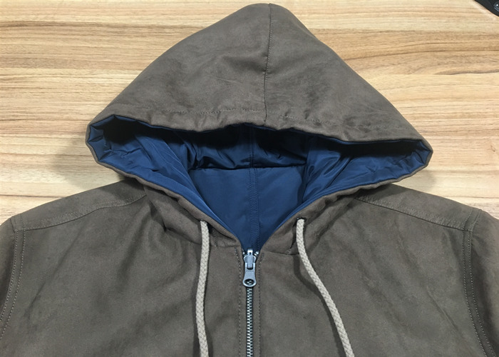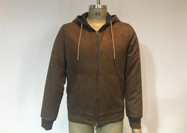 Mens Qulited And Ribbed Suede Bomber Coat Anti Wind Pu Hooded Jacket Images |
